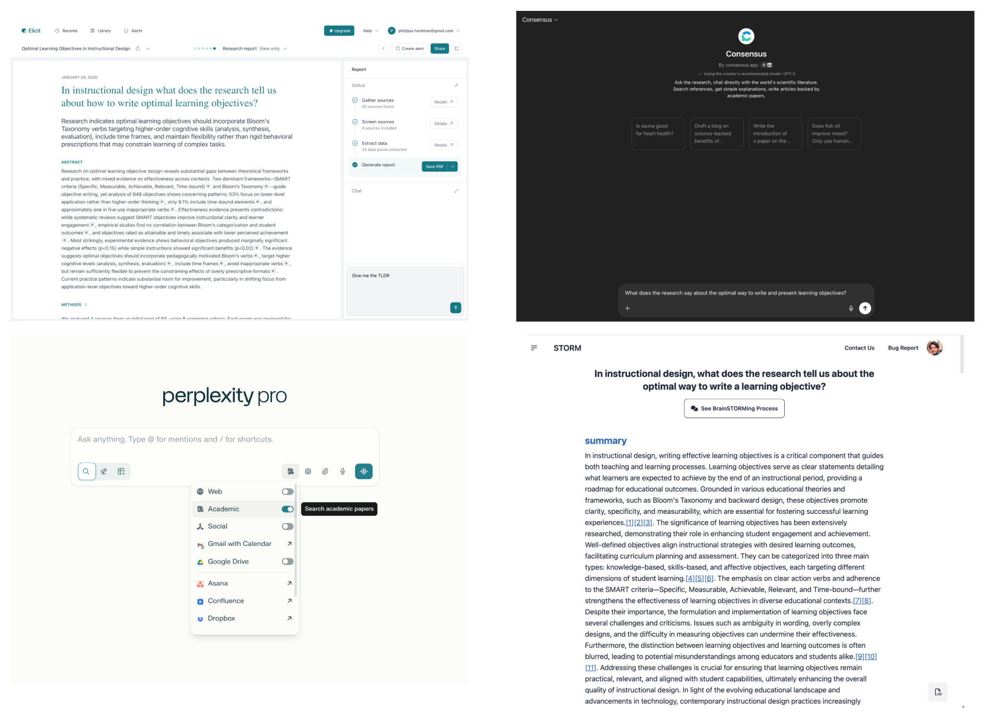 Perplexity: searched and summarises research. Use academic mode to limit its sources to robust, peer reviewed research.